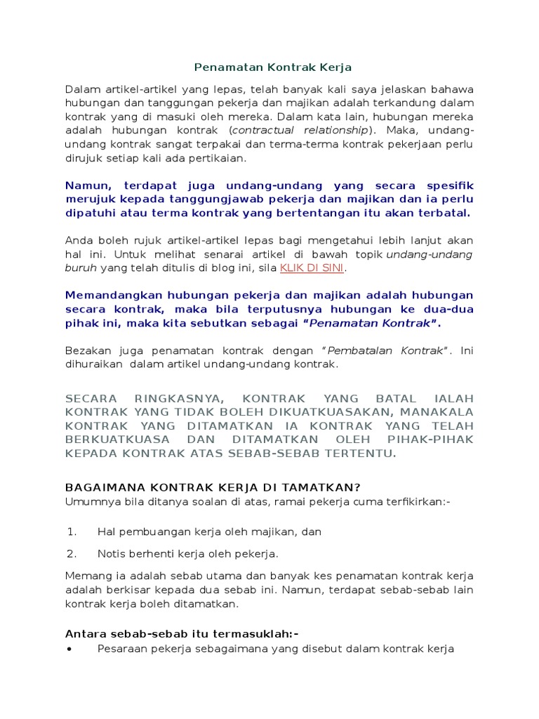 Semoga dapat membantu perusahaan anda yang ingin me. Surat kontrak kerja adalah surat yang dibuat oleh pihak pemberi kerja (perusahaan) dengan si penerima kerja (karyawan) yang mana isinya kesepakatan antara kedua belah pihak tersebut. Penamatan kontrak sepanjang tempoh kontrak ini, kedua dua pihak boleh menamatkan kontrak melalui pemberian notis 1 minggu lebih awal. Sekali lagi, selamat datang dan kami berharap kehadiran anda akan memajukan lagi organisasi ini. Contoh surat perjanjian kontrak kerja.
