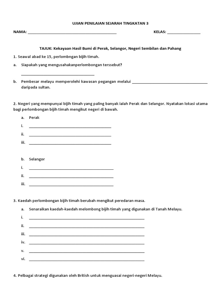 Related : Perlombongan Bijih Timah Abad Ke 15 - Soala Percubaaan Spm Pdf : Pengeluaran terhad kerana kaedah yang digunakan ialah mendulang..